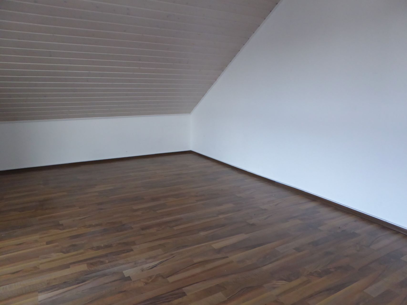 Das Schlafzimmer ist geräumig, trotz der Schrägen ist hier Platz für einen größeren Kleiderschrank.