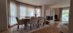 Der großzügige Wohn- und Essbereich bildet das Herzstück der Wohnung. Große Fensterflächen sorgen für eine helle, offene Atmosphäre, während der integrierte Kamin gerade in den kälteren Monaten eine besonders angenehme und ruhige Wohnstimmung schafft und den Raum zu einem natürlichen Mittelpunkt des Alltags werden lässt.