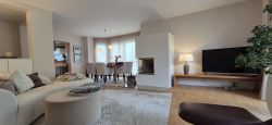 Der großzügige Wohn- und Essbereich bildet das Herzstück der Wohnung. Große Fensterflächen sorgen für eine helle, offene Atmosphäre, während der integrierte Kamin gerade in den kälteren Monaten eine besonders angenehme und ruhige Wohnstimmung schafft und den Raum zu einem natürlichen Mittelpunkt des Alltags werden lässt.